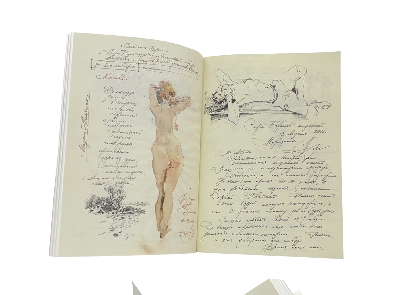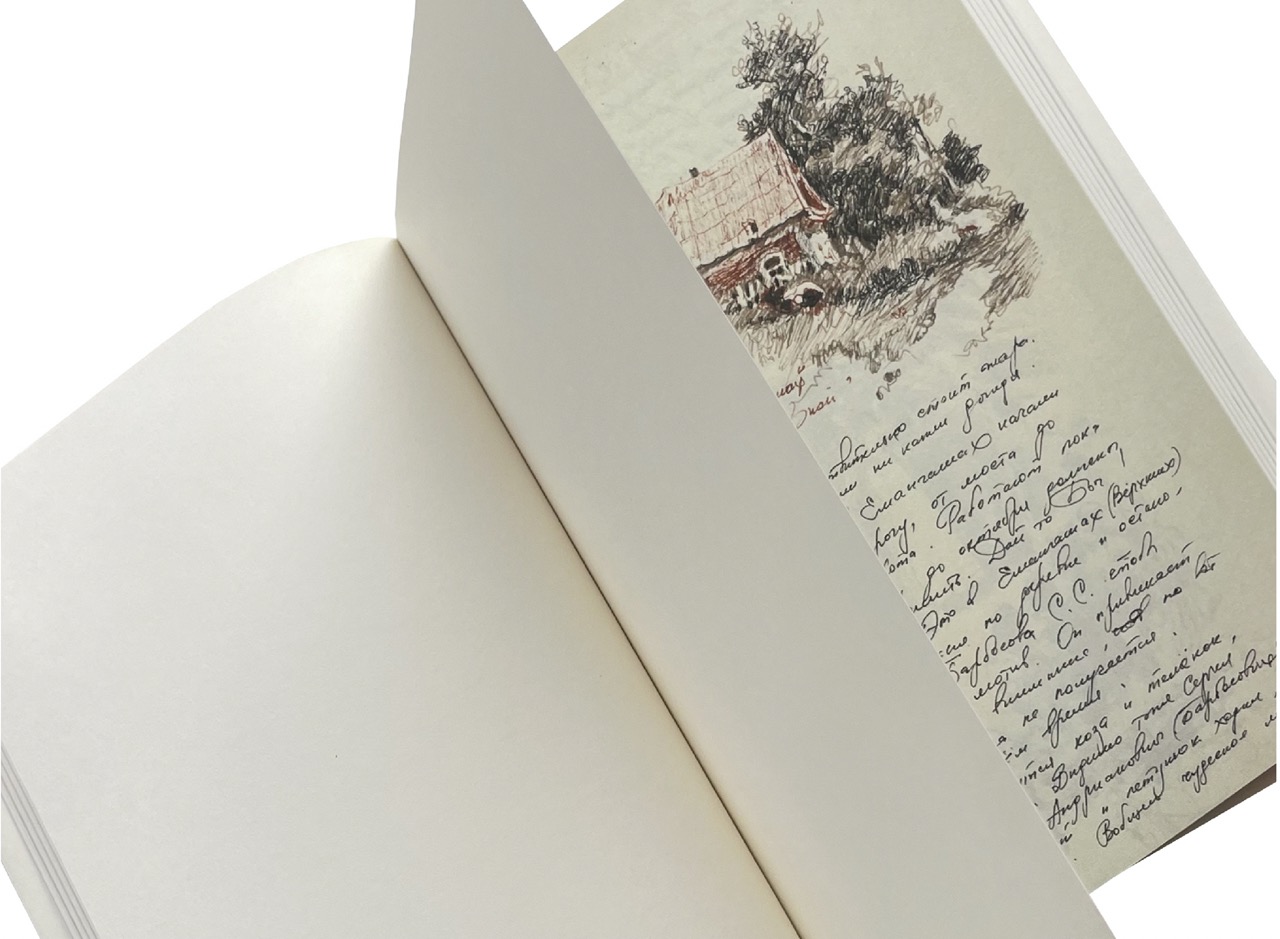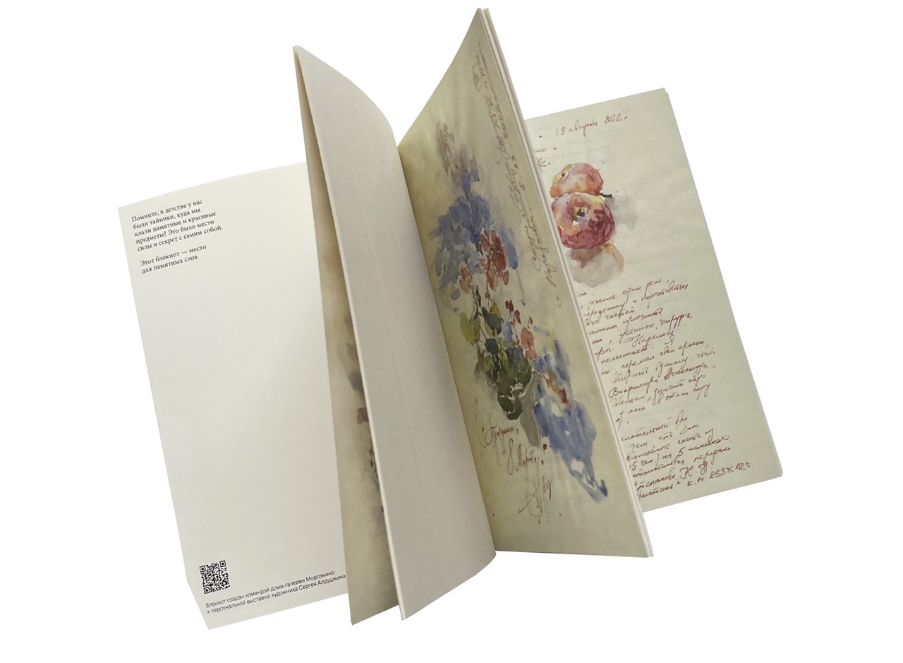 Блокнот для заметок и зарисовок. В блокноте есть страницы на которых вы можете увидеть фрагменты из личных дневников художника Сергея Алдушкина. Это очень личные и сиюминутные реакции на происходящее вокруг, которые раньше видели только самые близкие.