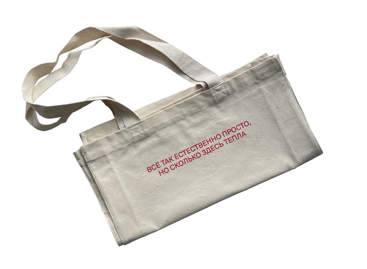 Специально к выставке Сергея Алдушкина мы сделали капсульную партию шоперов. Сергей и его живопись ассоциируются у нас с теплом и уютом, гостеприимством и деревней, с природой и простыми радостями. Цитата на шопере отражает это настроение, которое можно забрать с собой